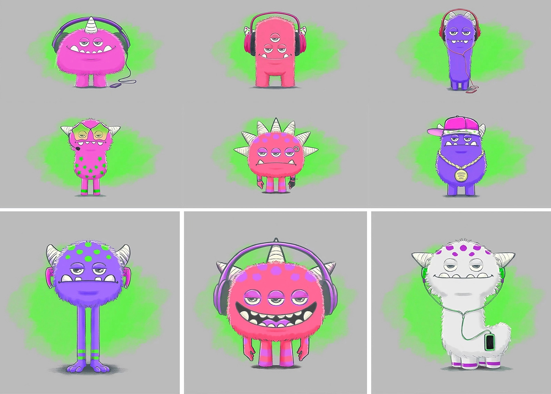 During two days, different creatives from Latin America, Spotify teammates and CUBOC agency met in a creative sprint to represent all musical tastes. We realized that every person has not one kind of favorite music, but a lot of favorite musical genres, so the better way to describe this is saying that all of us have a monster inside hungry of songs. We created a system to research every combination of music and bring to life different monsters for each Spotify user.
